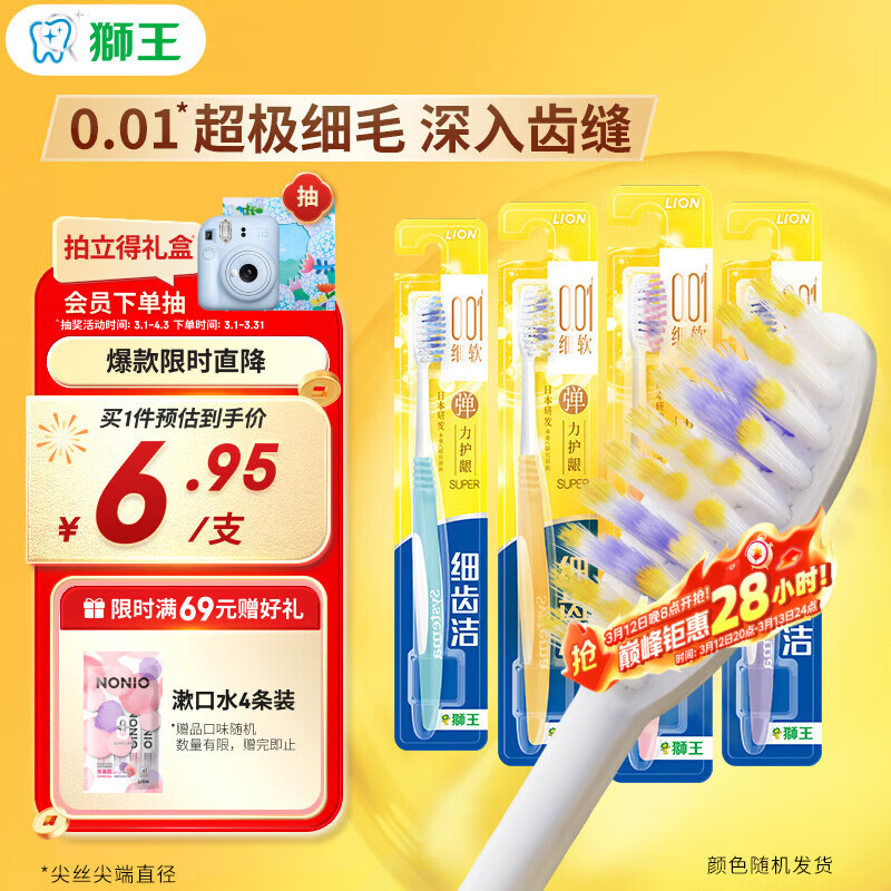 狮王(Lion)细齿洁0.01弹力护龈牙刷4支软毛深入清洁弹力刷柄成人家庭装