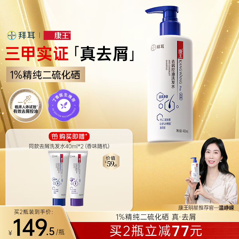 康王拜耳【丁香医生】二硫化硒洗剂去屑洗发水460ml 控油止痒头皮清爽