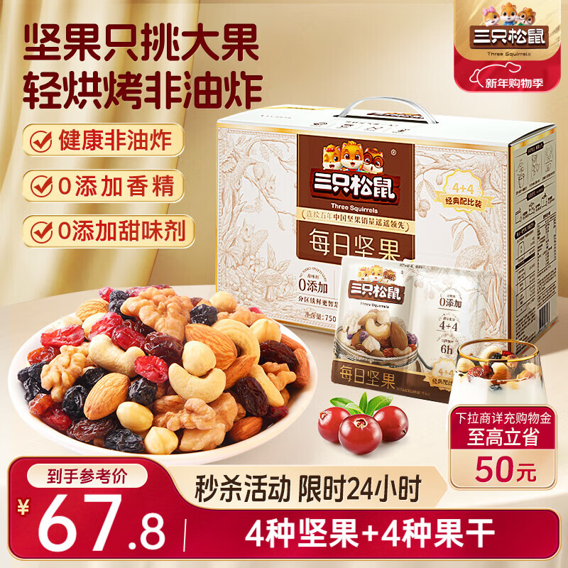 三只松鼠每日坚果750g/30袋 坚果礼盒礼包零食腰果葡萄干 团购礼赠新年