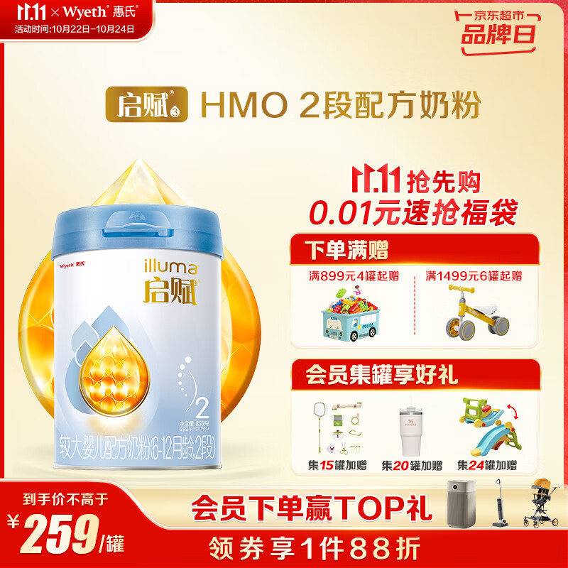 惠氏(Wyeth)启赋蓝钻【加量装】HMO较大婴儿配方奶粉2段(6-12月)850g