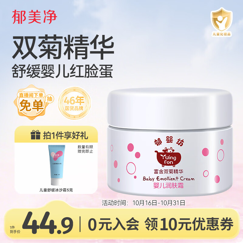 郁美净婴儿面霜35g宝宝冬季面霜保湿滋润补水新生儿舒缓泛红乳液鲜奶霜