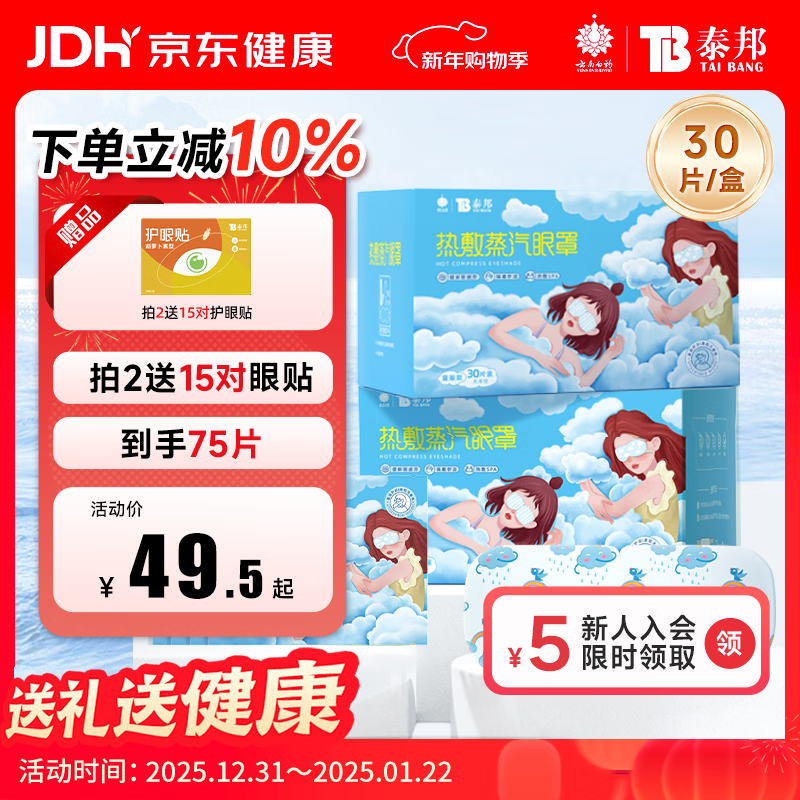 云南白药泰邦 热敷蒸汽眼罩 遮光睡眠眼罩 蒸汽热敷 男女通用 30片量贩装