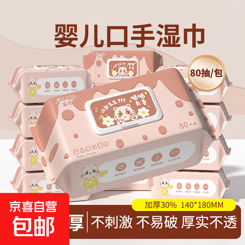 小猫咪儿童手口湿巾大包新生儿纸巾宝宝柔湿巾婴儿手口湿纸巾 80抽 1包