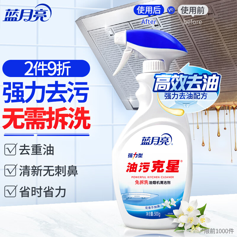 蓝月亮油污克星 500g/瓶(姜花香)厨房重油污清洁剂 油烟机油污净