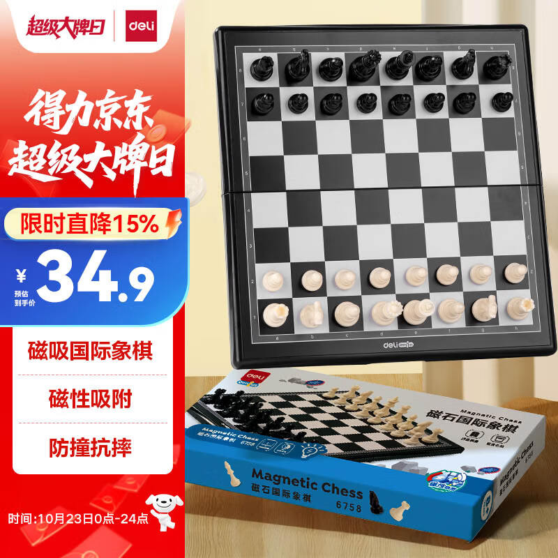得力(deli) 磁石国际象棋学生桌游厚实便携式折叠棋盘益智桌游