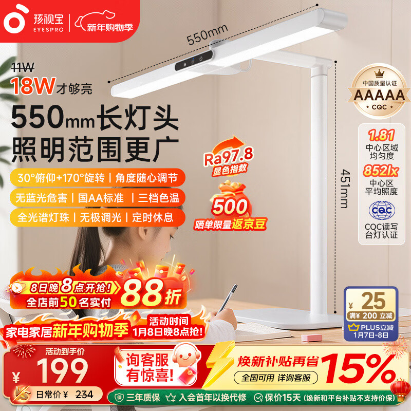 孩视宝国AA级儿童护眼灯学生学习专用防蓝光防近视全光谱台灯L3