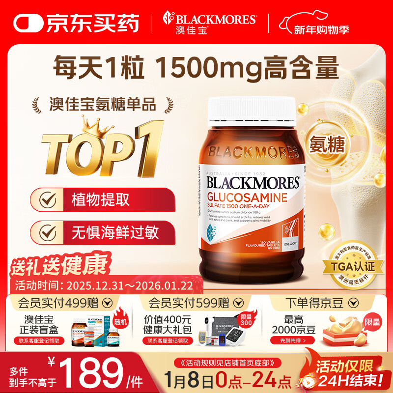 澳佳宝Blackmores 氨糖维骨力 高浓度1500mg 180粒 成人中老年 澳洲进口