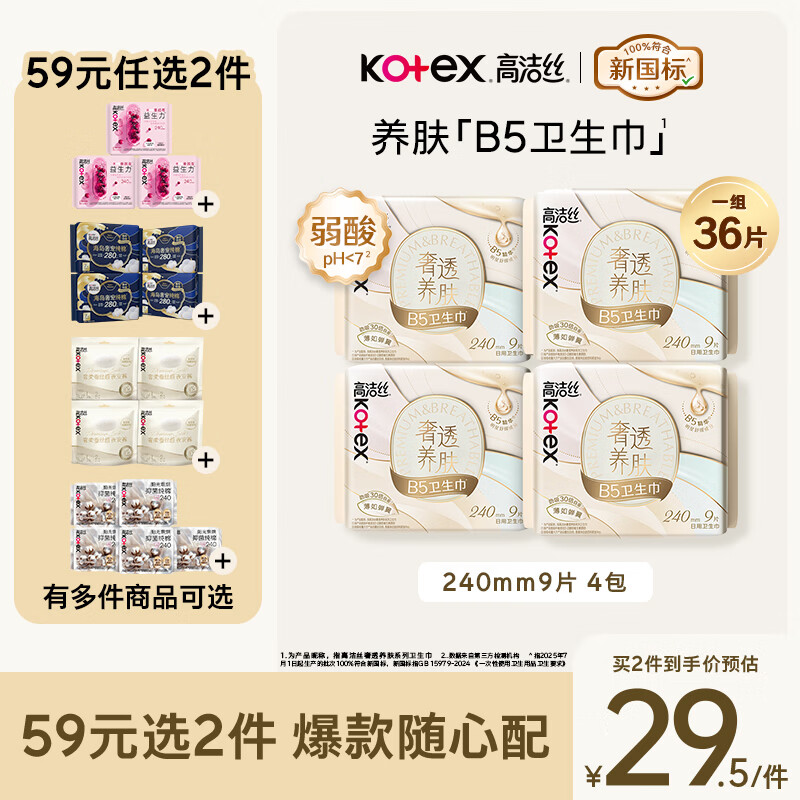 高洁丝【红痒必备】B5奢透养肤卫生巾240mm 9片*4包日用姨妈巾京东自营
