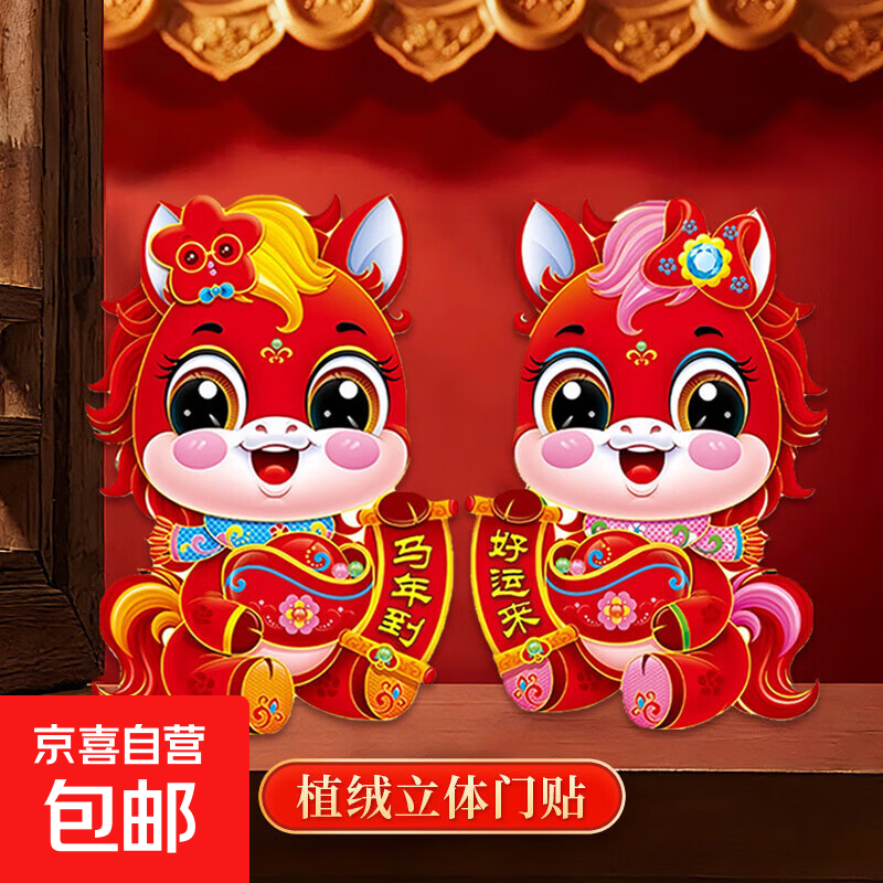 2026马年生肖贴新年春联对联福字窗花红包大礼包283件套年货礼盒大门装饰用品 生肖贴【1对专享】24*16cm