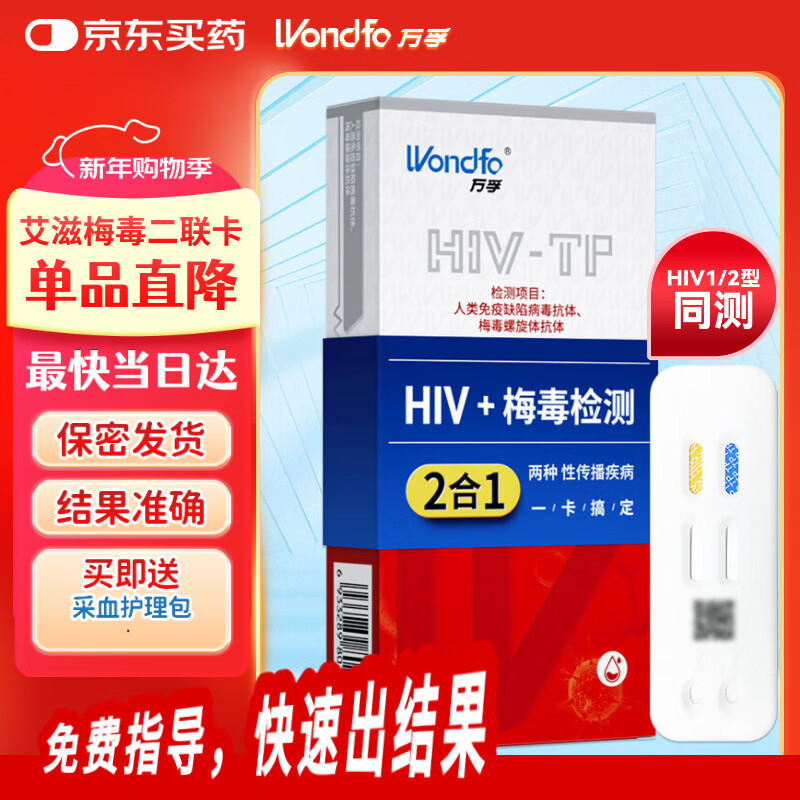 万孚艾滋+梅毒二联检测卡 非四代hiv艾滋检测 艾滋病检测试纸 HIV试纸