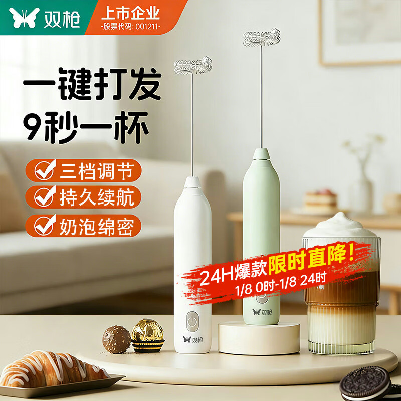双枪(Suncha)打奶泡器打蛋器咖啡打泡器奶泡打发器 手持小型电动搅拌棒打发器