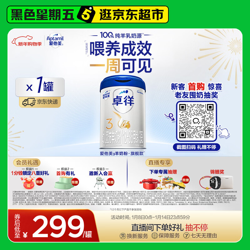 爱他美(Aptamil)卓徉幼儿配方羊奶粉3段(12-36月龄)800g自护吸收双突破