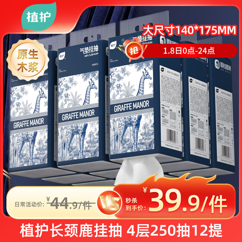 植护悬挂式抽纸4层250抽*12提餐巾纸巾厨房纸厕纸面巾纸家用擦手用纸