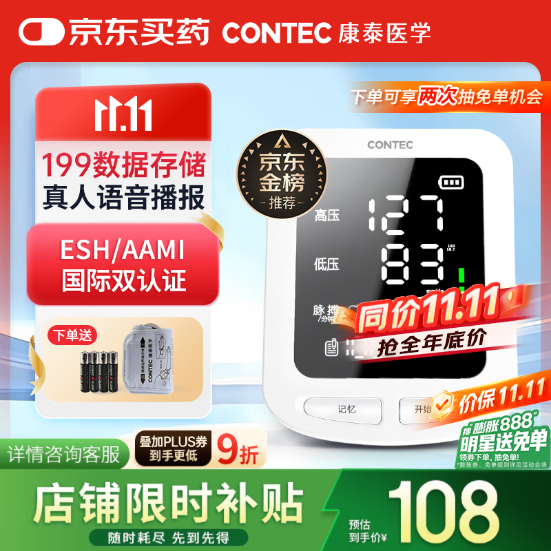 CONTEC康泰电子血压计医用高精准血压仪家用语音播报成人老人08E