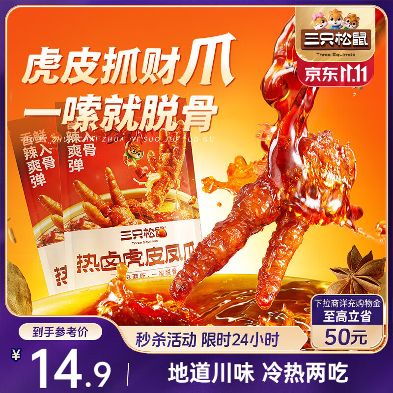 三只松鼠热卤虎皮凤爪香辣味300g袋装休闲零食鸡爪卤味鸡肉熟食小吃