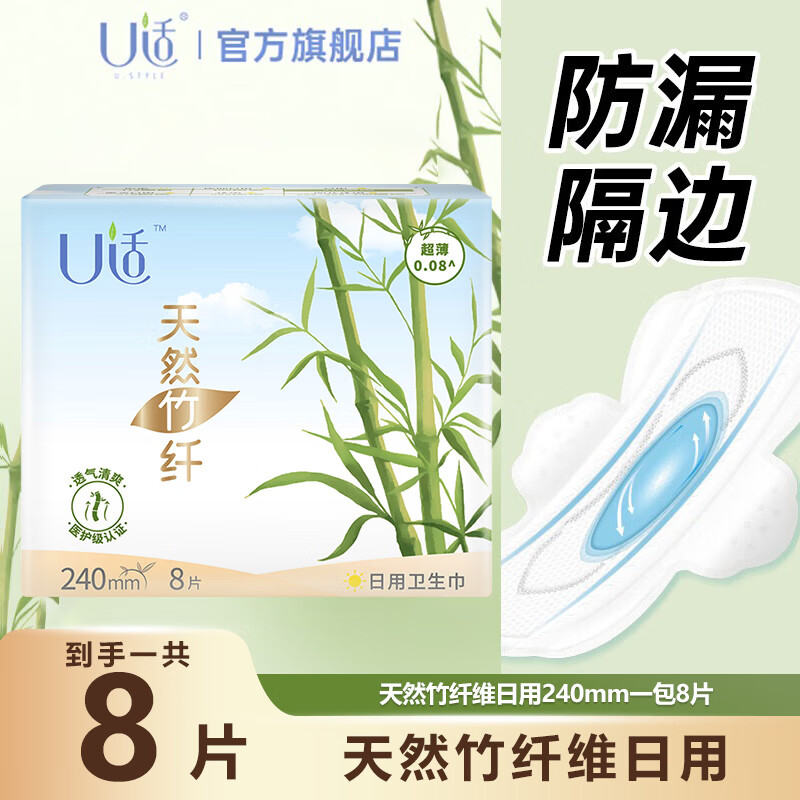 U适日用卫生巾 240竹纤新升级 丝薄干爽姨妈巾240mm*8片姨妈巾卫生垫
