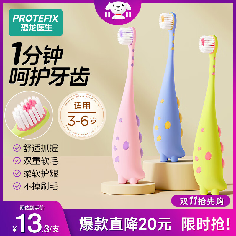 恐龙医生(PROTEFIX)儿童牙刷3-6岁宝宝细软毛训练牙刷3-4-5-6岁以下小孩口腔清洁小头