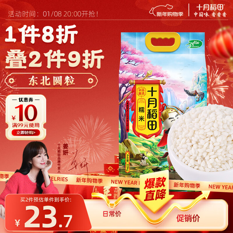 十月稻田 糯米 5斤 新米 东北圆粒 五谷杂粮粥米 粽子糯米粉 腊八粥原料