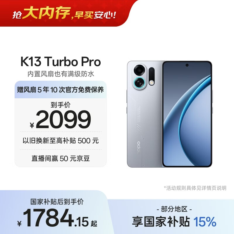 OPPO K13 Turbo Pro 16GB+256GB 骑士银 变频主动散热风扇 第四代骁龙8s 5G防水游戏OPPO手机 国家补贴
