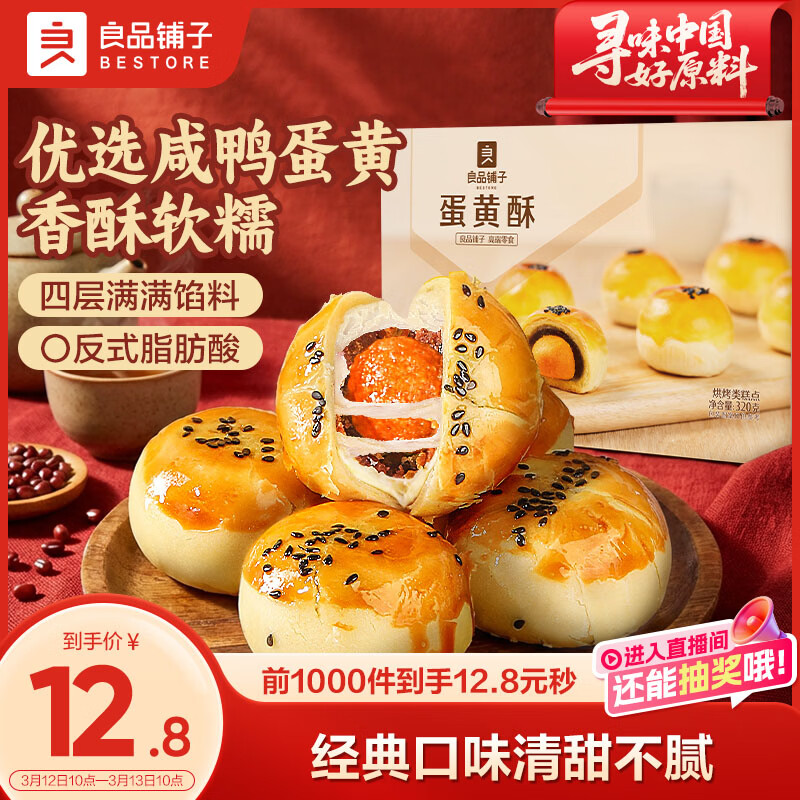 良品铺子蛋黄酥礼盒320g雪媚娘送人送礼团购早餐零食中式糕点点心38女神节