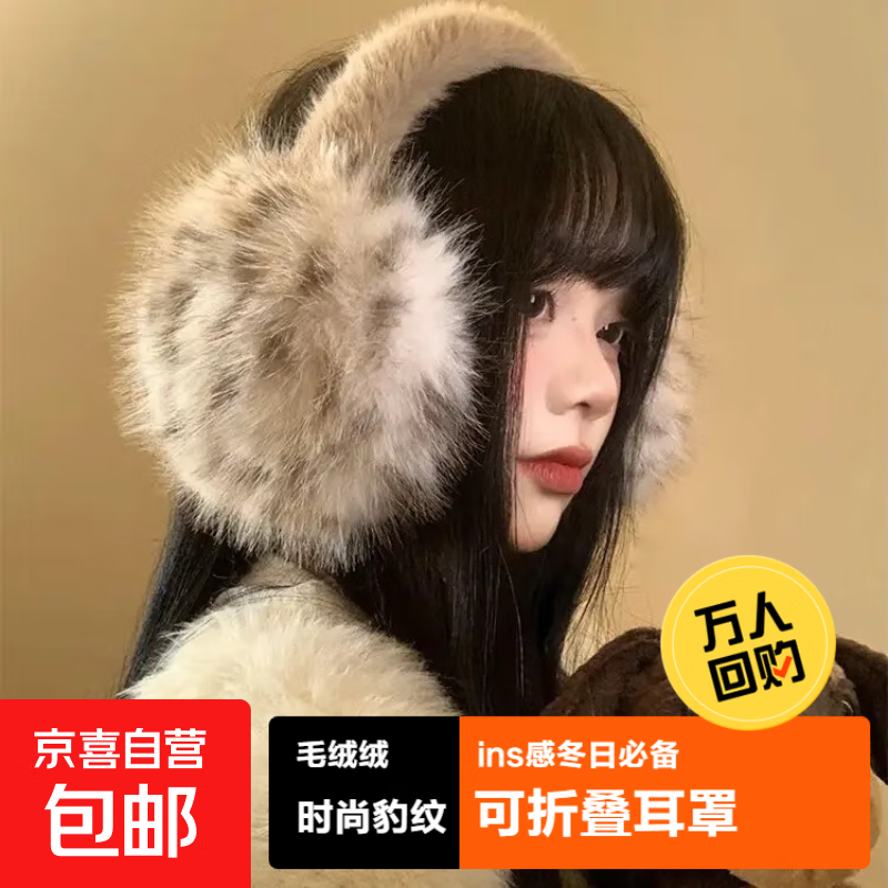 豹纹毛绒耳罩女冬季毛茸茸耳包耳套骑车防冻防寒保暖耳暖耳捂子 毛茸茸【咖色】