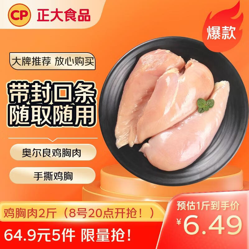 CP正大食品鸡大胸2斤 冷冻生鲜 鸡胸肉生鲜鸡肉鸡排自做轻食