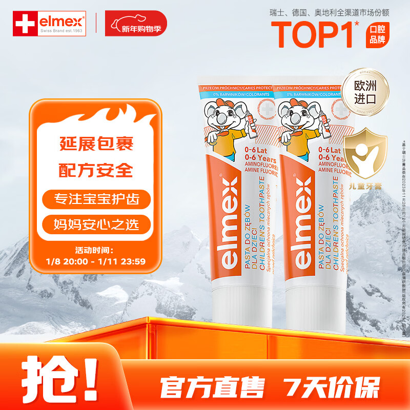 ELMEX艾美适宝宝儿童牙膏0-6岁奥拉氟专效防蛀 50ml*2支装套装