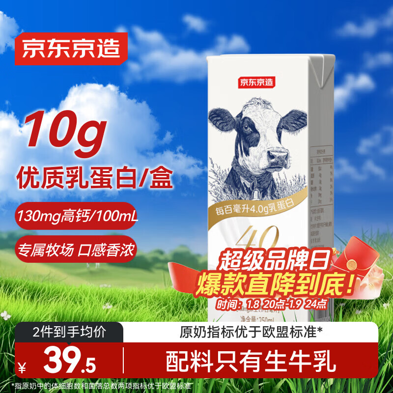 京东京造 4.0g纯牛奶250ml*16 4.0g蛋白质130mg高钙性价比早餐奶