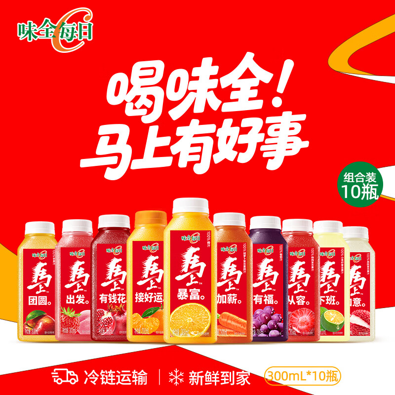 味全每日C果汁 300ml 冷藏饮料混合果蔬汁低温果汁 混合口味10瓶(随机组合)