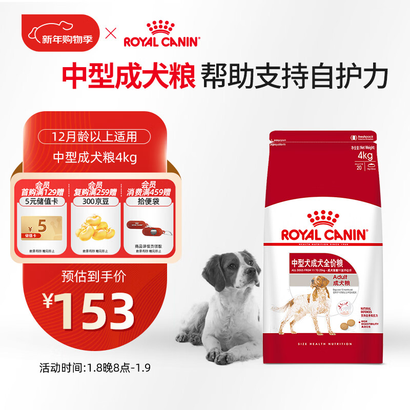 皇家狗粮 成犬狗粮 犬粮 宠物 中型犬 M25 全价犬粮 ≥12月 4KG