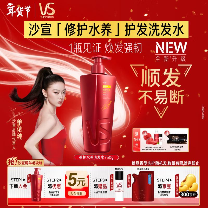 沙宣大红瓶修护水养洗发水750g深层修护发丝抚平毛躁洗发套装男女