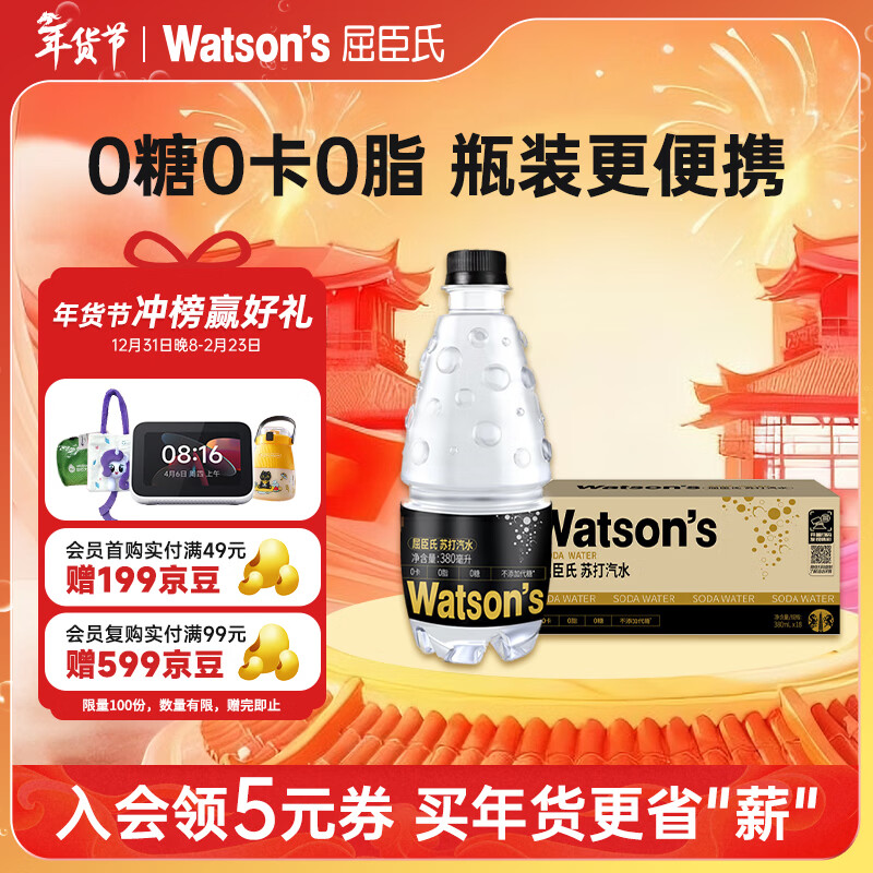 屈臣氏原味无糖苏打水0糖0卡0脂气泡水380mL*18瓶热门商品京东专供年货