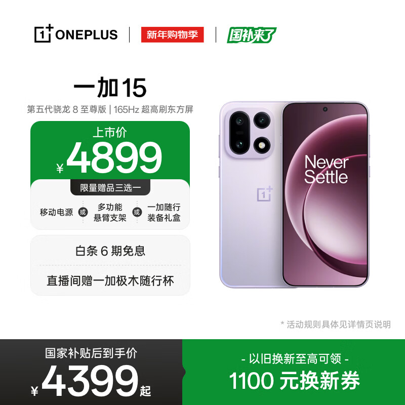 一加 15 16GB+512GB 雾光紫 手机oppo 第五代骁龙 8 至尊版 165Hz超高刷 旗舰游戏电竞5G新机 国家补贴
