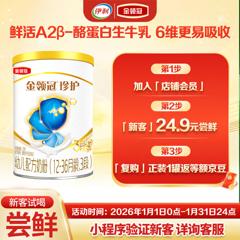 伊利金领冠珍护【三代OPO】幼儿A2β-酪蛋白奶粉3段130克(1-3岁)