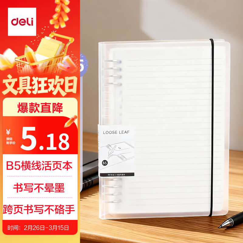 得力(deli)B5/60张活页本笔记本子作业本可拆卸横线学生线圈本记事本考研日记本HB560