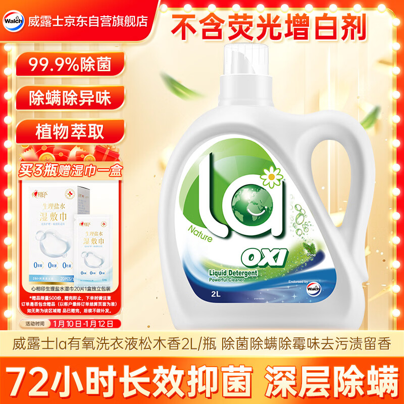 威露士la有氧洗衣液松木香2L/瓶 除菌除螨除霉去污渍留香机洗快洗手洗