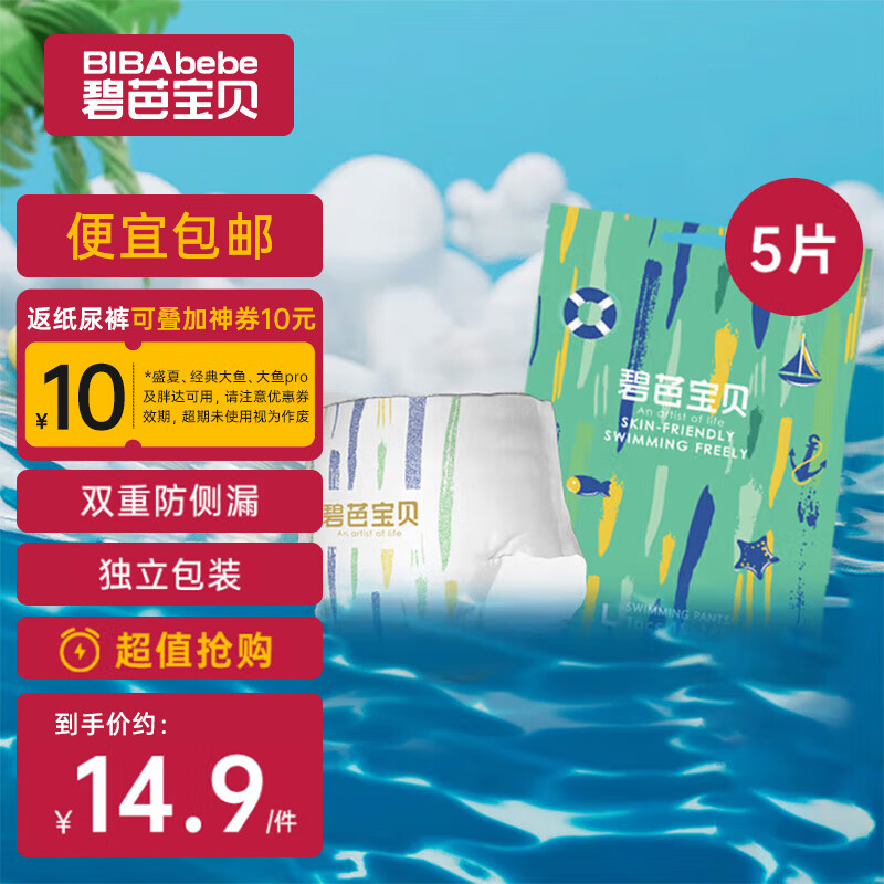 碧芭宝贝盛夏光年游泳裤XXL码5片(15kg以上)婴儿一次性防水裤宝宝尿不湿