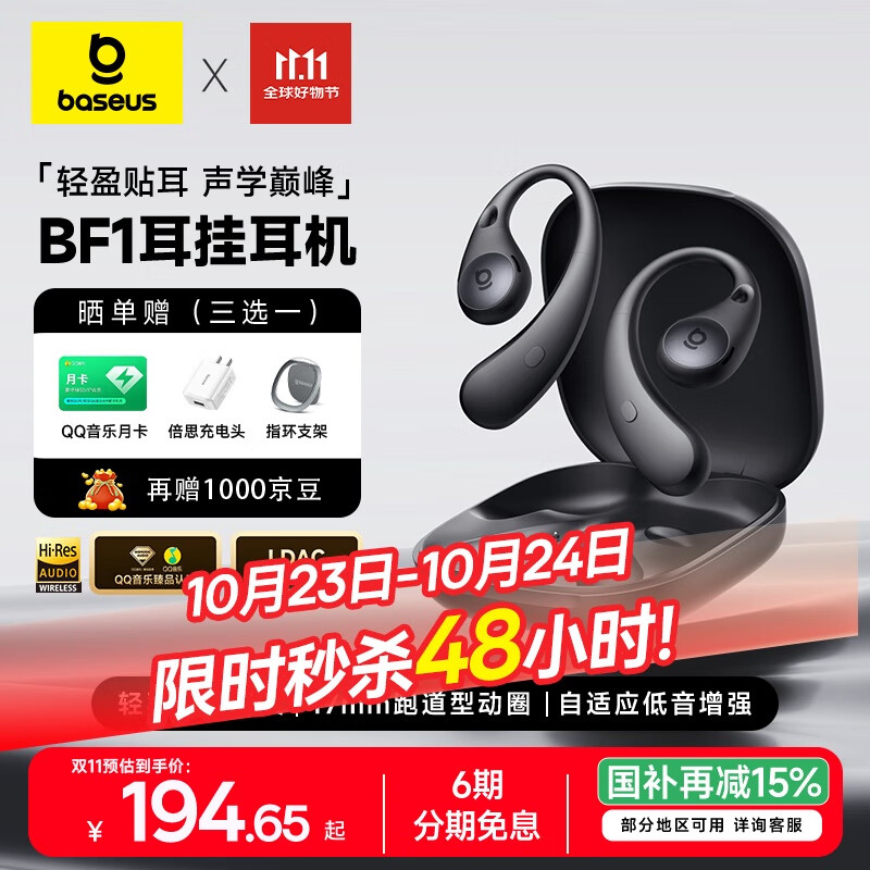 倍思【旗舰新品】BF1蓝牙耳机挂耳式开放式运动跑步长续航通话适用苹果华为手机