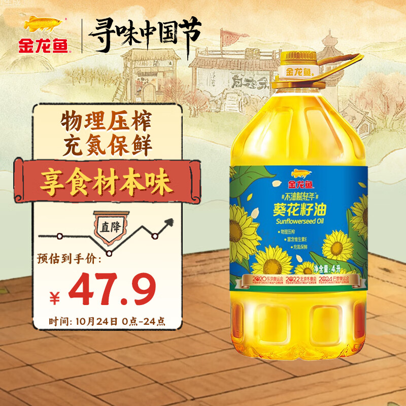 金龙鱼 食用油 压榨 不油腻轻年葵花籽油4L(新老包装随机发货)