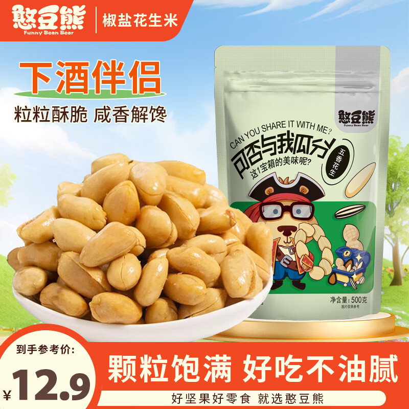 憨豆熊五香椒盐花生米500g/袋 即食花生零食小吃坚果炒货餐饮食堂下酒菜