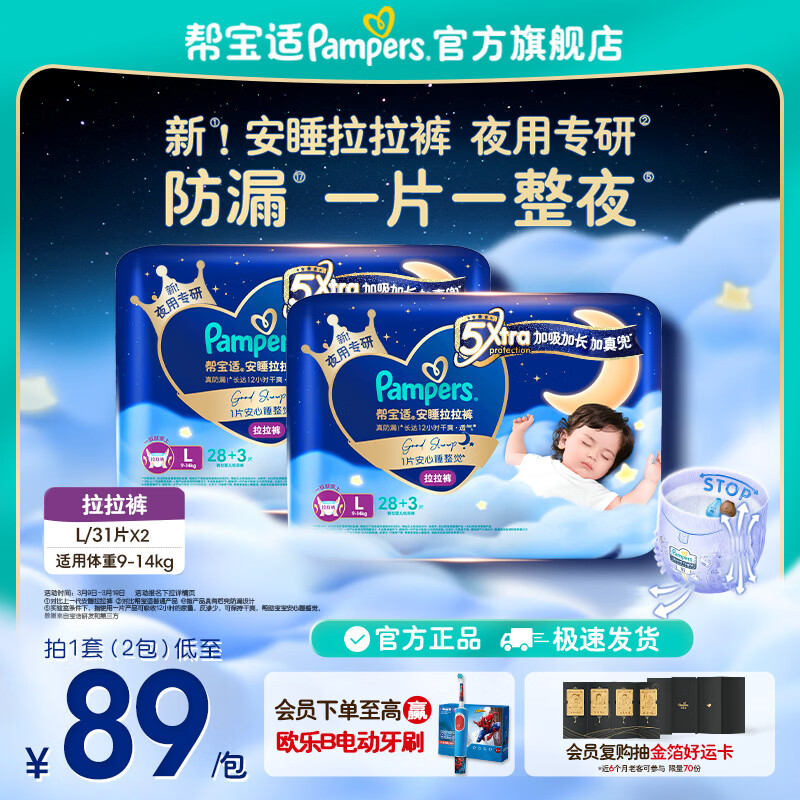 帮宝适【整觉王者】新安睡拉拉裤超薄透气 婴儿尿裤尿片尿不湿尿裤 安睡拉拉裤L62片(9-14kg) 常规款