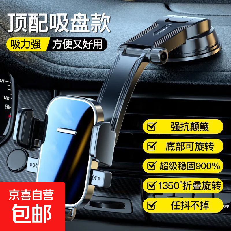 【包邮】2025新款真空滴胶吸盘磁吸手机支架多功能车载中控台防抖导航车内专用 瀑布-【方形镜面】