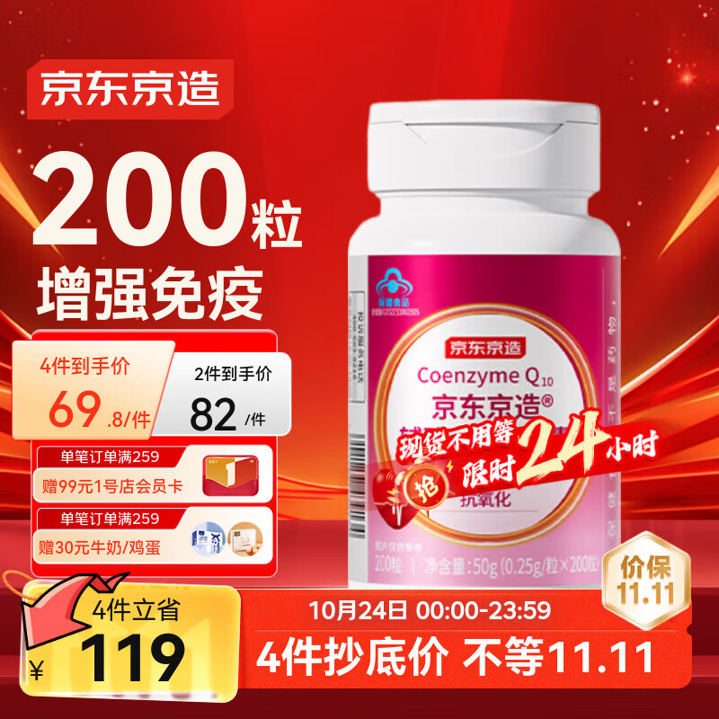 京东京造 辅酶Q10软胶囊200粒 增强免疫力 抗氧化 心脏保健中老年