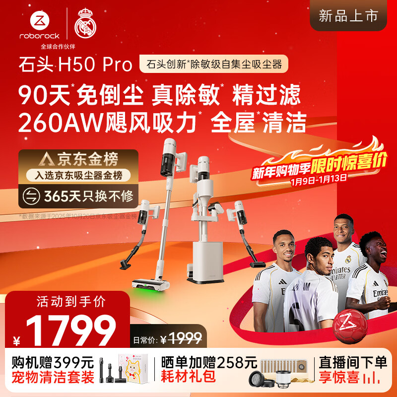石头H50 Pro自集尘吸尘器【90天免倒尘全链0缠毛】绿光显尘家用无线大吸力除螨宠物