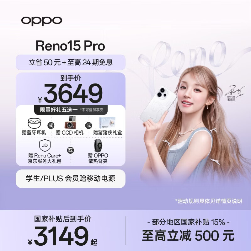 OPPO Reno15 Pro 12GB+256GB 星光蝴蝶结 2亿像素 无线充电 AI实况 直播拍照 5G智能手机 新品国家补贴