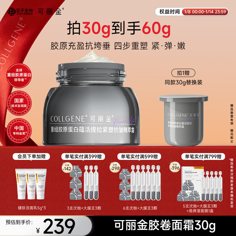 可丽金(COLLGENE)重组胶原蛋白胶卷面霜30g 抗皱紧致乳液面霜护肤品新年礼物送女生