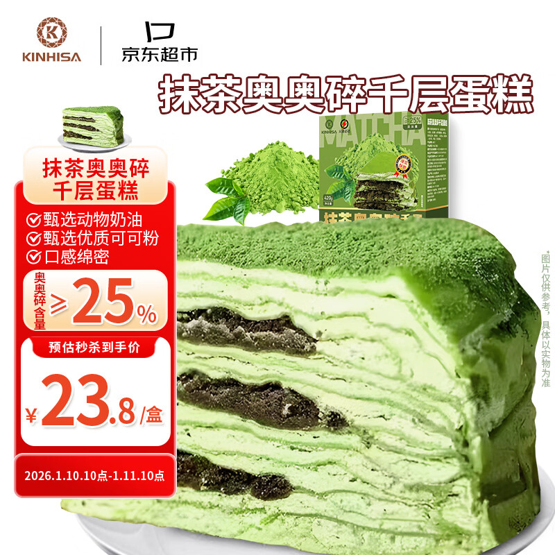 KINHISA抹茶奥奥碎千层蛋糕6英寸420g 动物奶油下午茶零食甜品生日蛋糕