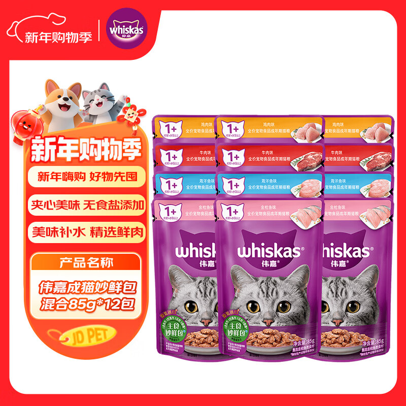 伟嘉猫罐头 湿粮包猫零食进口成猫猫粮主食妙鲜包85g*12混合味