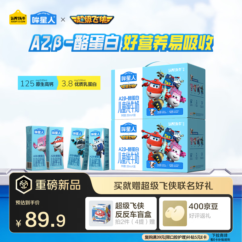 认养一头牛哞星人A2β-酪蛋白儿童牛奶200ml*10盒*2提超级飞侠联名礼盒