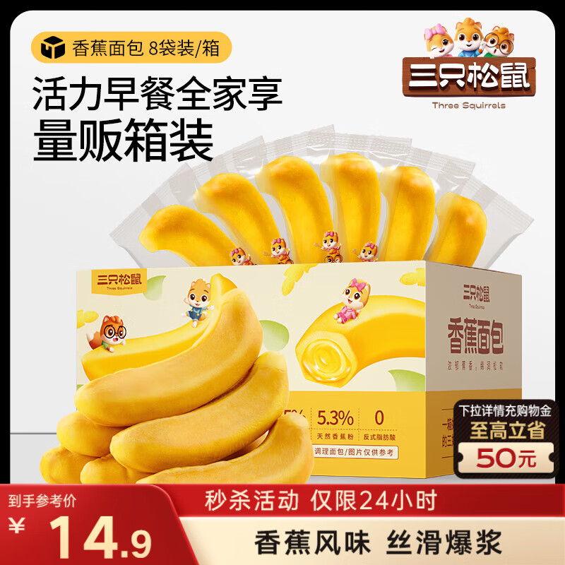 三只松鼠香蕉面包400g 夹心吐司手撕面包休闲零食办公室营养早餐代餐